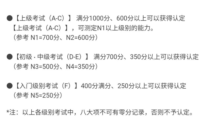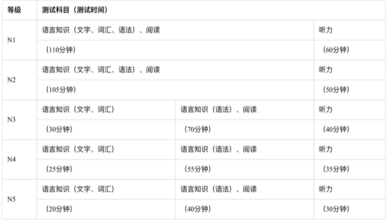 JLPT分为N1、N2、N3、N4、N5共5个级别。