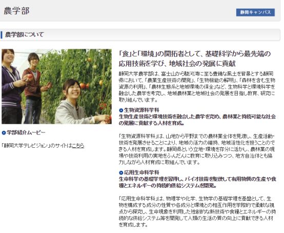 农学研究科:食料共生系统学、资源生命科学、生命机能科学。